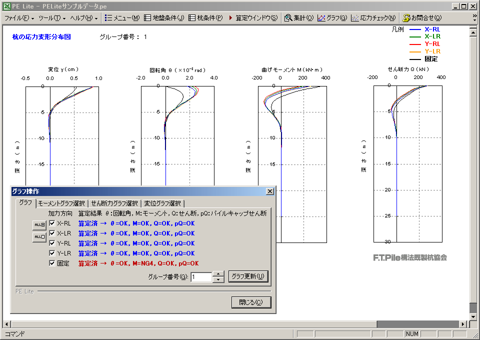 本ソフトウェア ( PE Lite:ピーイーライト ) は、F.T.Pile構法を採用した既製コンクリート杭の地震時の応力変位を試算するフリーソフトであり、以下の特徴があります。